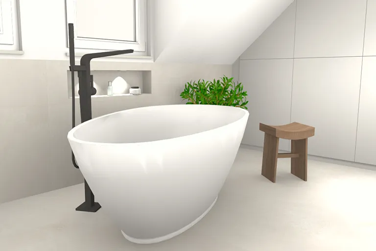 Unsere Architektin fertigt nach Materialauswahl fotorealistische Bilder mit Hilfe unseres Planungsprogramms an. Hier sehen Sie, wie Ihr Badezimmer am Ende des Badumbaus aussieht. Darauf basiert unser verbindliches Angebot.