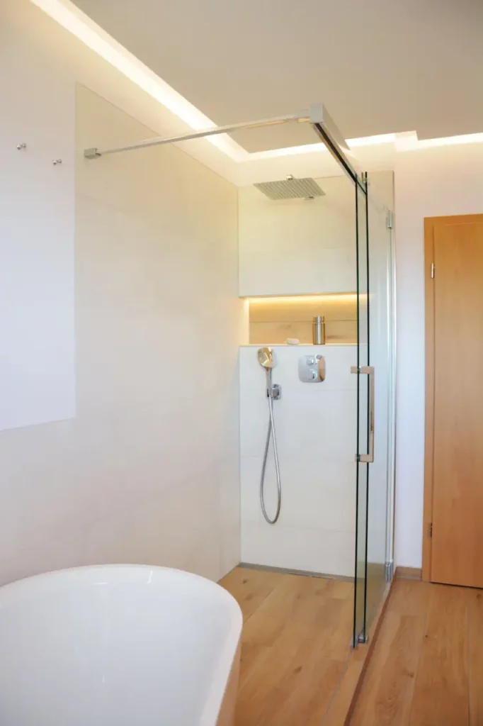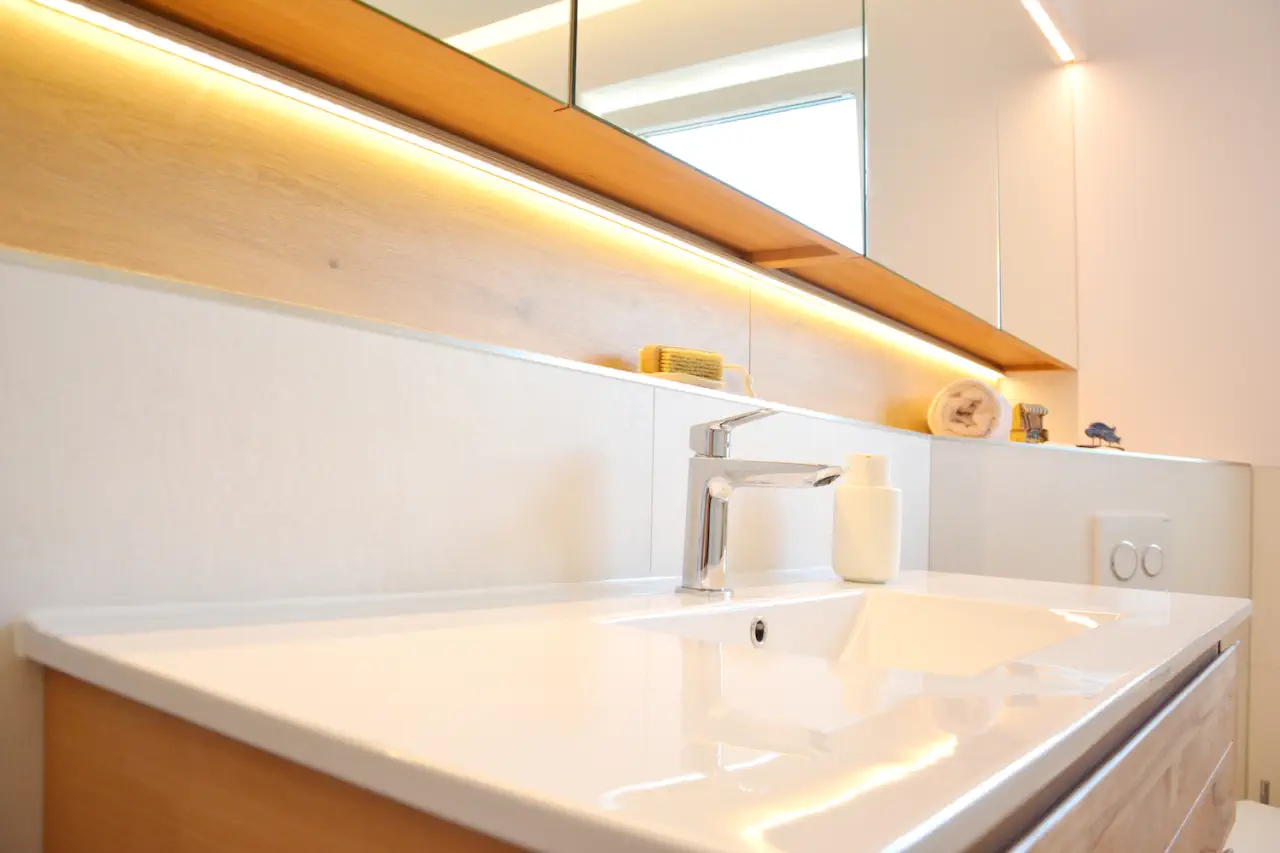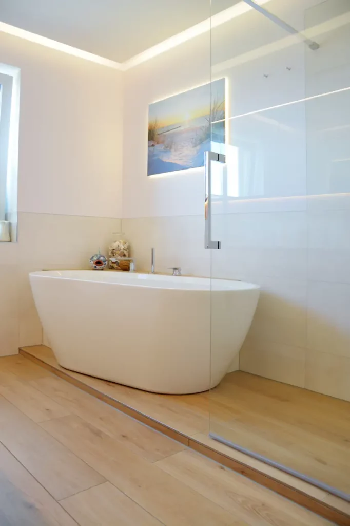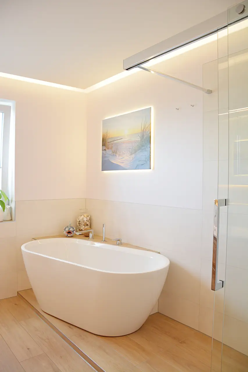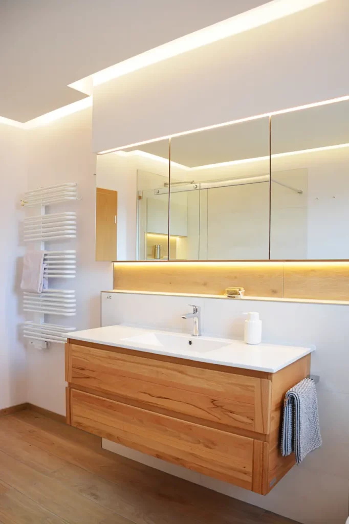 Indirekte Beleuchtungselemente sind ein wichtiger Bestandteil des gesamten Badezimmers.