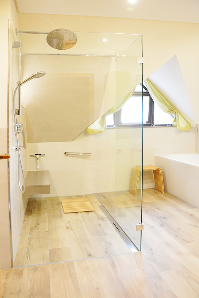Für die Meisten gehört die Dusche zum täglichen Reinigungsritual. Eine großzügige, ebenerdige Dusche bietet stolperfreies und durch einen rutschfesten Belag sicheres Duschvergnügen. Ob Sie sich für eine Gleit-, Schwenk- oder Pendeltür entscheiden, hängt von Ihrem Geschmack ab. Es gibt auch begehbare Duschlösungen, die ganz ohne eine Tür auskommen. Ein Hocker oder ein fest eingebauter Sitz (z. B. aus Naturstein) bietet nicht nur älteren Menschen eine enorme Unterstützung bei der täglichen Dusche.